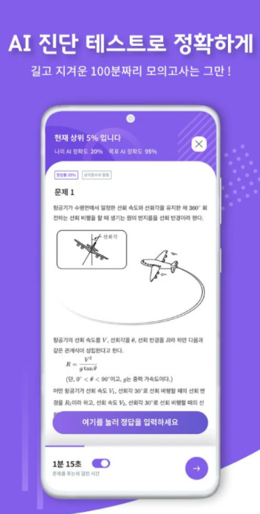 10~15분만 문제를 풀면 인공지능이 여러분의 실력을 즉시 분석해 드립니다!
