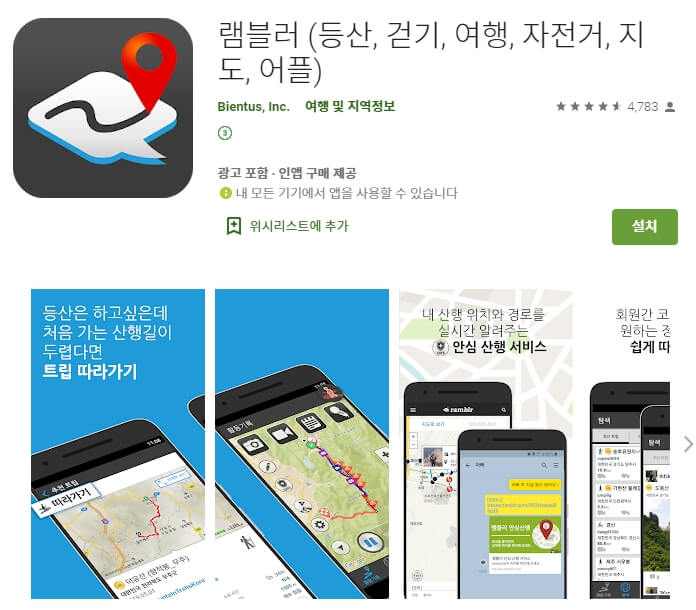 3. 램블러 (등산길안내 , 등산 네비) 어플