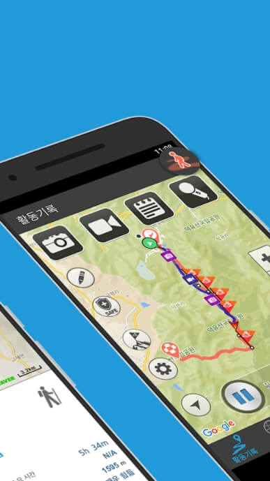 경로, 활동기록(이동시간, 거리, 속도, 고도) 측정 및 통계 제공