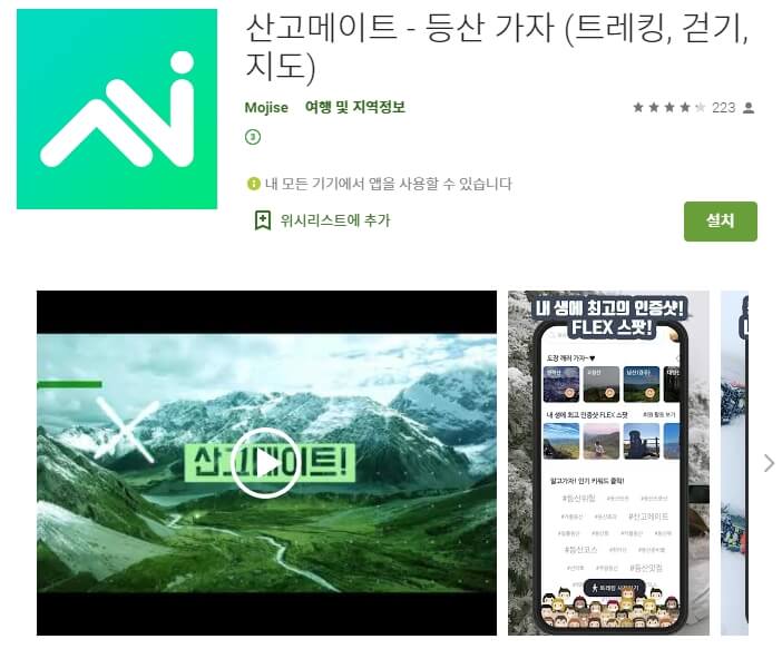 다섯 번째 소개할 어플은 산고 메이트 (등산 정보, 산행지도) 어플입니다. 등산도 하고 보상도 받고 싶다면 추천드립니다. 등산로 지도와 둘레길 지도 정보도 제공됩니다. 아래는 산고메이트 (등산 정보, 산 생지도) 어플에 대한 자세한 설명이니 참고하세요~