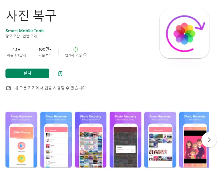 ▶ 수많은 사진복구 앱을 설치 하였지만 한번도 성공하지 못하였습니다 유일하게 이앱을 설치하여 잃어버린 사진을 찾아서 복구 하였습니다 강추합니다