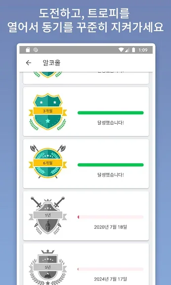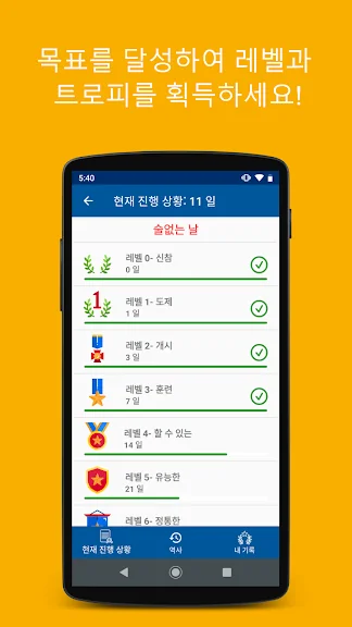 매 성공에 트로피를 받게 됩니다. 트로피는 절제 시간과 날짜에 따라 보상받습니다. 절제가 길어질수록 더 많은 주요 트로피를 받게 됩니다.