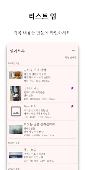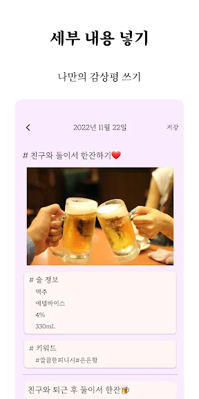 술의 향, 맛, 술자리 분위기, 당신의 순간을 일기장에 담아두세요.
