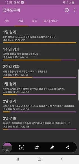 - 금주 기간에 따른 내 몸의 변화를 기록해보세요.