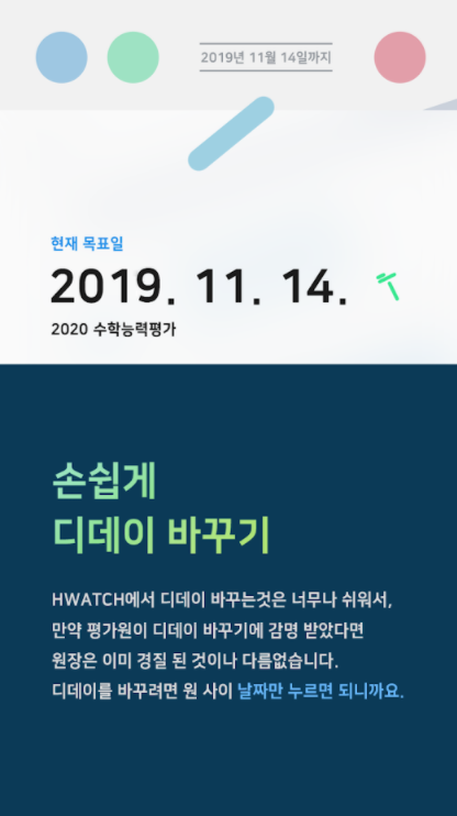 ( 오늘의 추천 아래 위치한 목표일을 터치하여 설정하세요 )