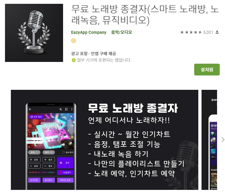 아래는 무료 노래방 종결자 어플에 대한 제작자의 설명이니 참고하시기 바랍니다~ ^^*