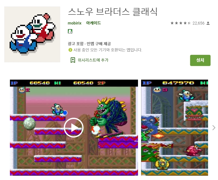 두 번째 소개할 어플은 스노 브라더스 클래식 어플입니다.