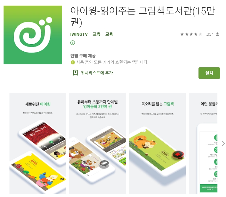 두번쨰 소개할 어플은 아이윙(읽어주는 그림책 도서관) 어플입니다.