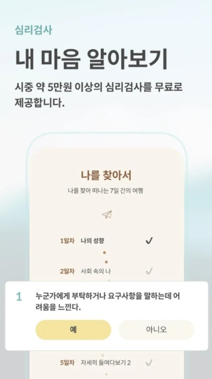 ◆ 100문항의 무료 심리검사, '나를 찾아서'