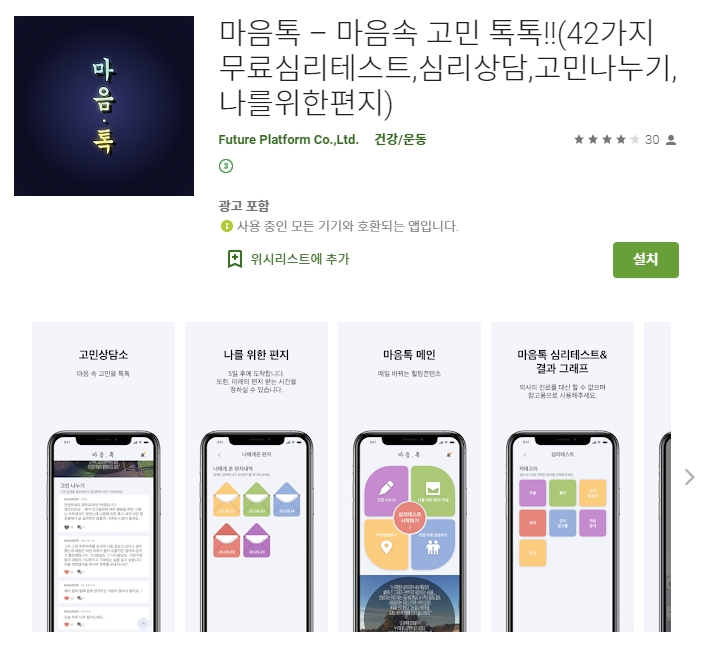 마음톡 – 마음속 고민 톡톡!!(42가지 무료심리테스트,심리상담,고민나누기,나를위한편지) - Google