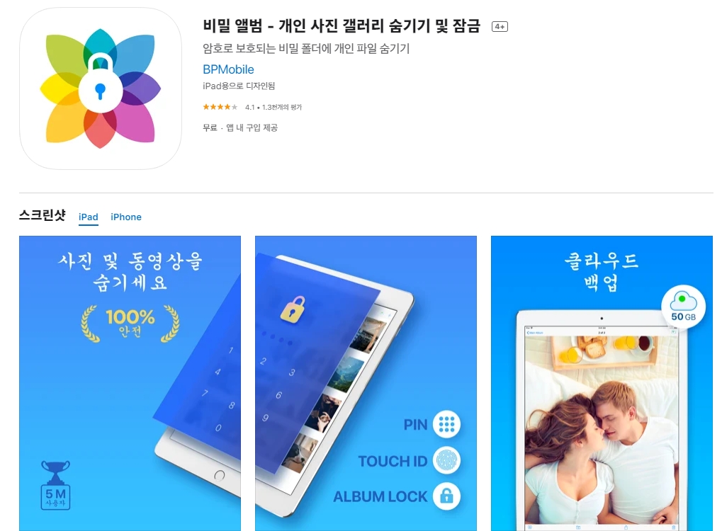 2. 비밀 앨범 (사진 숨기기 잠금) 어플 [아이폰/앱스토어]